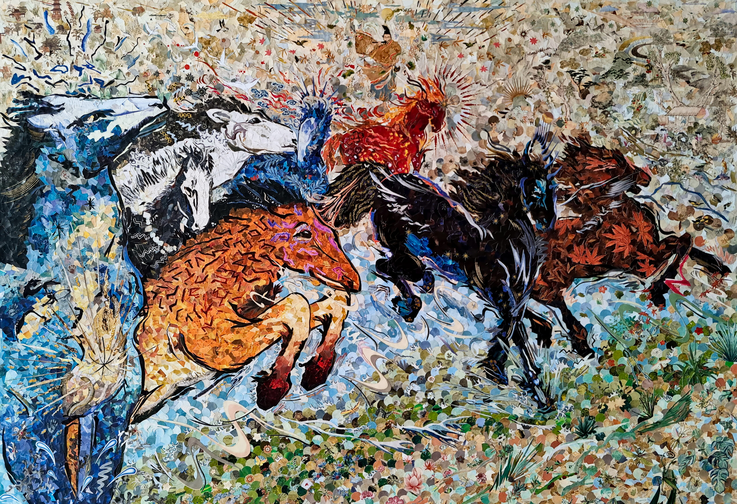 L’art du collage La poésie du fragment Le collage est ma façon de trouver l’harmonie dans le chaos. Suivez-moi dans une galerie de pièces kaléidoscopiques. Bienvenue dans ce joli désordre. Découvrir Prochaine exposition Découvrez la prochaine exposition à la NECA de Bruxelles avec The Palm Beach Gallery du 13 novembre au 20 décembre 2025.Rencontrez moi au vernissage : le 13 novembre En savoir plus Mes dernières réalisations The Wild Lullaby Of The Shinobue Player And The Infinity Horses Collage 133x93cm Amateratsu Okami Collage 67x82cm The Silver Linning Of The Golden Hour Collage 60×76 cm Portfolio Helios Galahad Originaire de Normandie, il voyage en Europe, Océanie et Asie pendant plusieurs années pour découvrir et observer des contrées lointaines. De cette expérience, un désir de création s’ouvre à lui. Une initiative qui se concrétisera en 2021… En savoir plus Vous souhaitez donner vie à une collaboration ? Expositions, Acquisitions, Commandes spécifiques ? Parlons-en !